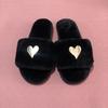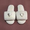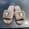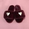 Новые пушистые тапочки, модные плоские тапочки в форме сердца для женщин, домашние повседневные хлопковые тапочки из кроличьего меха для женщин