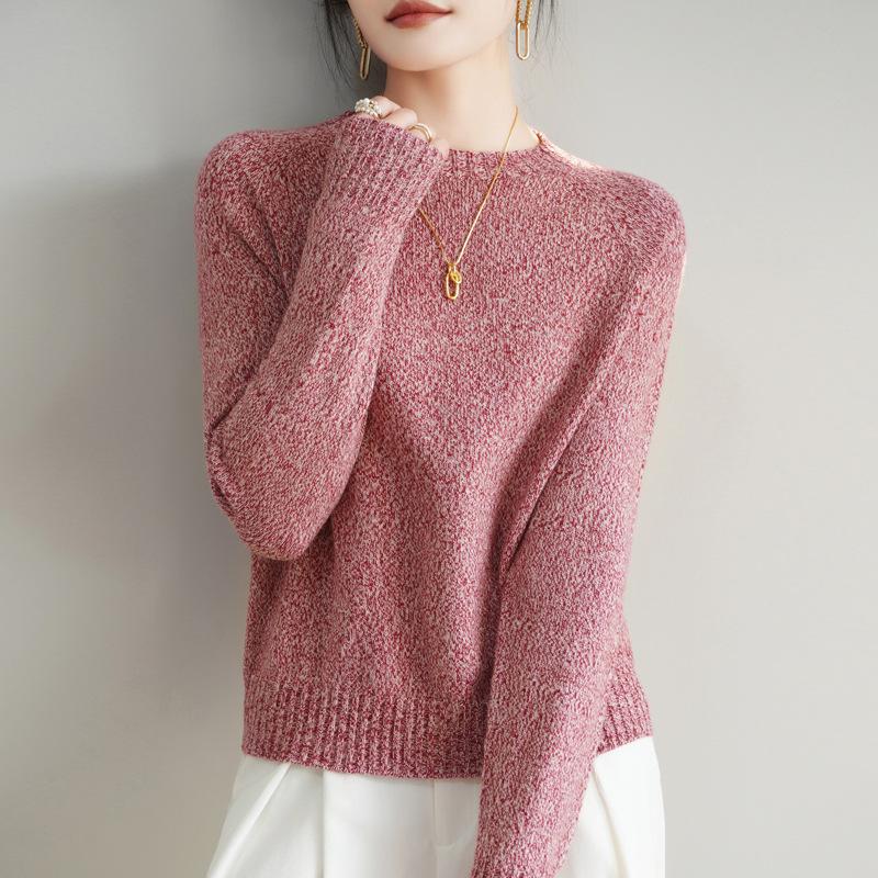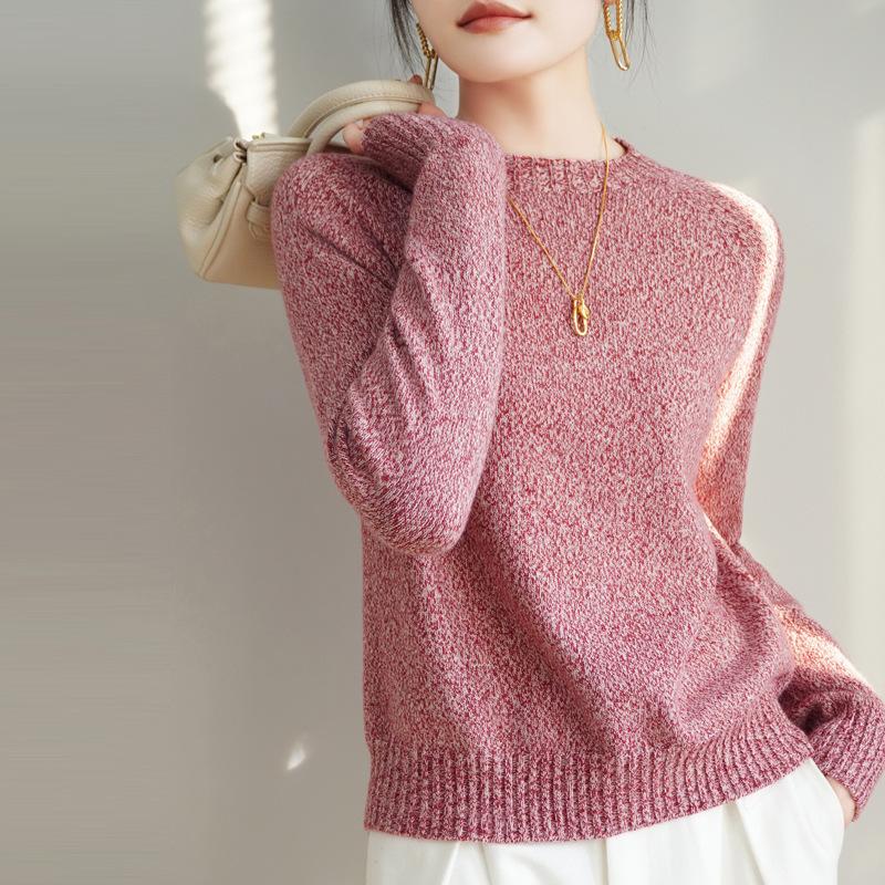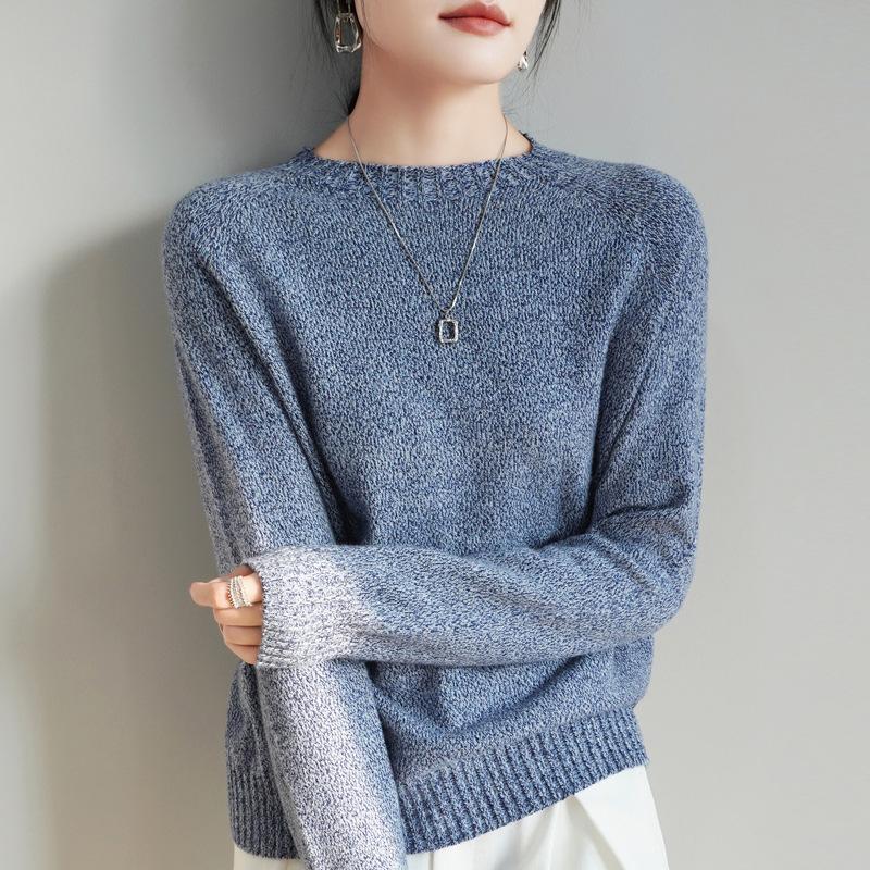 Новый трикотажный свитер с круглым вырезом для весны и осени для женщин сочетается со свободным свитером в качестве непринужденного базового слоя.