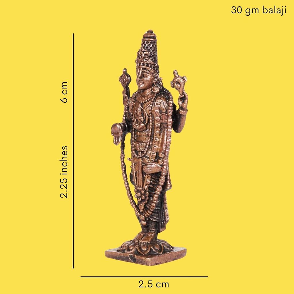 Медный идол Баладжи ручной работы | 2,25 дюйма | Античная отделка патиной