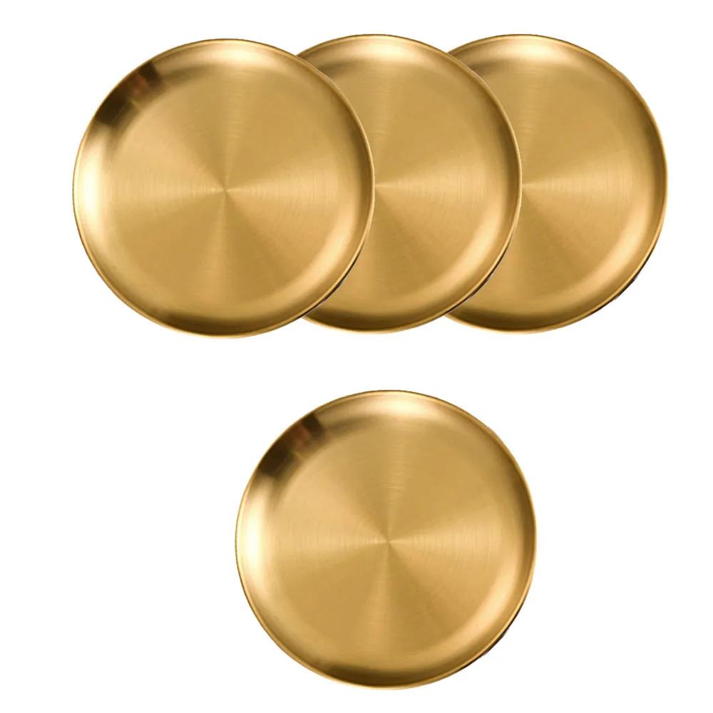 4 шт. Круглая золотая тарелка, нержавеющая сталь, мелкий поднос, тарелка 20/23/26/30 см, походная тарелка, посуда для барбекю, пикника, кухонная посуда — купить товар онлайн с бесплатной доставкой по всему миру!