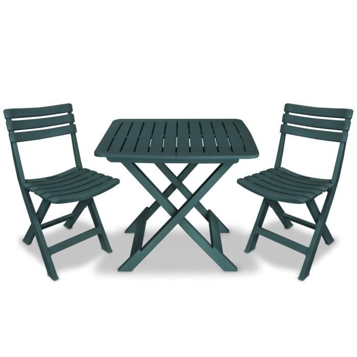 Ensemble de bistro - vidaXL - 3 pcs - Plastique - Vert - Résistant aux intempéries