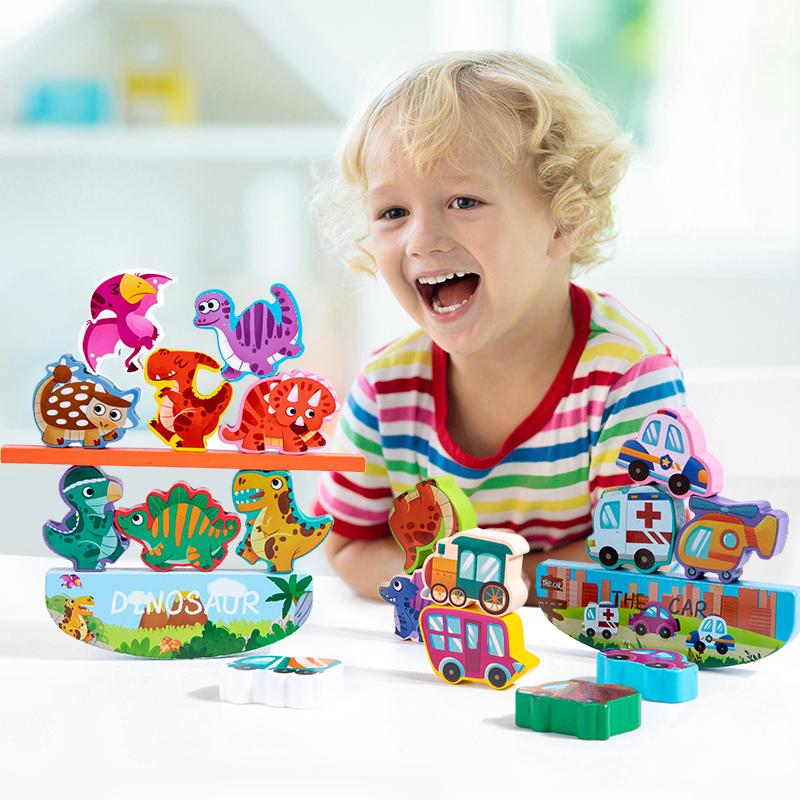 Деревянные Штабелируемые Животные Динозавры Строительные Блоки Игрушки Детские Образовательные Игрушки для Баланса Интерактивная Настольная Игра для Родителей и Детей