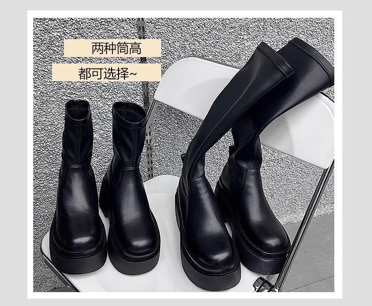 Женские кожаные сапоги новые завышенные на толстой подошве эластичные тонкие сапоги до колена сапоги рыцаря сапоги на высоком каблуке женщины