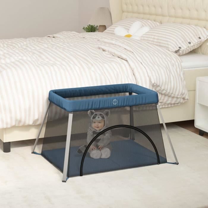 VidaXL Parc pour bébé avec matelas Bleu marine Tissu de lin 10304
