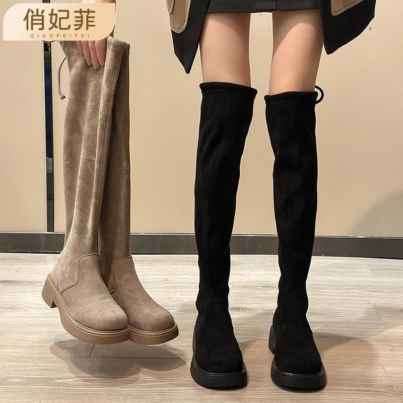 Показывая ноги длинные худые ноги длинные сапоги женские новые до колена эластичные сапоги замшевые тонкие женские сапоги
