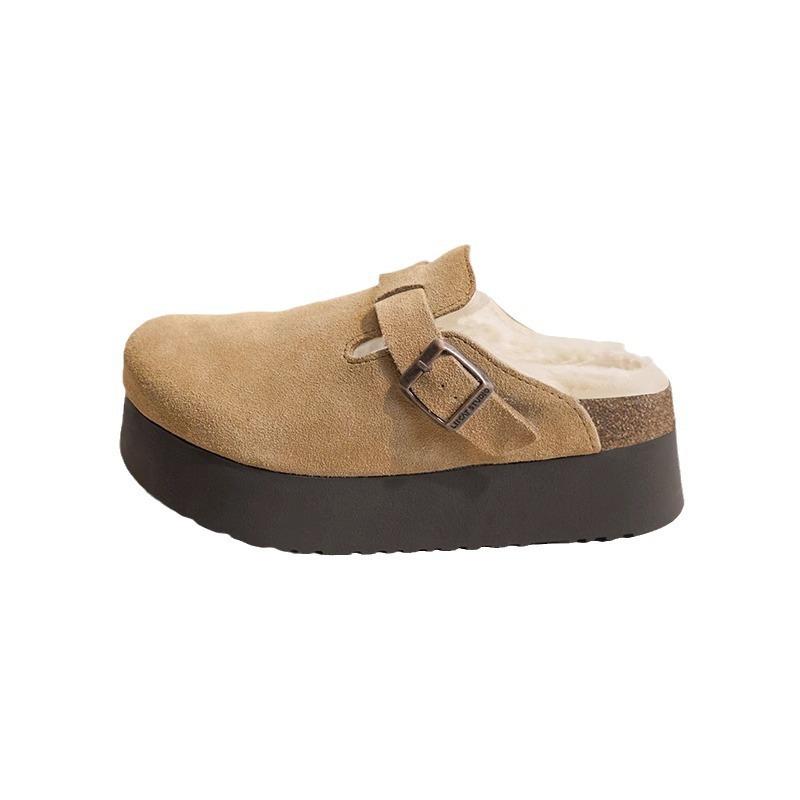 Бархатные туфли на толстой подошве для женской зимней сумки, полузакрытые пушистые тапочки для женщин, чтобы увеличить их рост и носить хлопковые туфли
