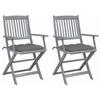 VidaXL Lot de 2 Chaises Pliables d'Extérieur avec Coussins, Sièges de Terrasse, Chaises de Salle à Manger, Meubles de Patio 3064536