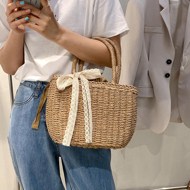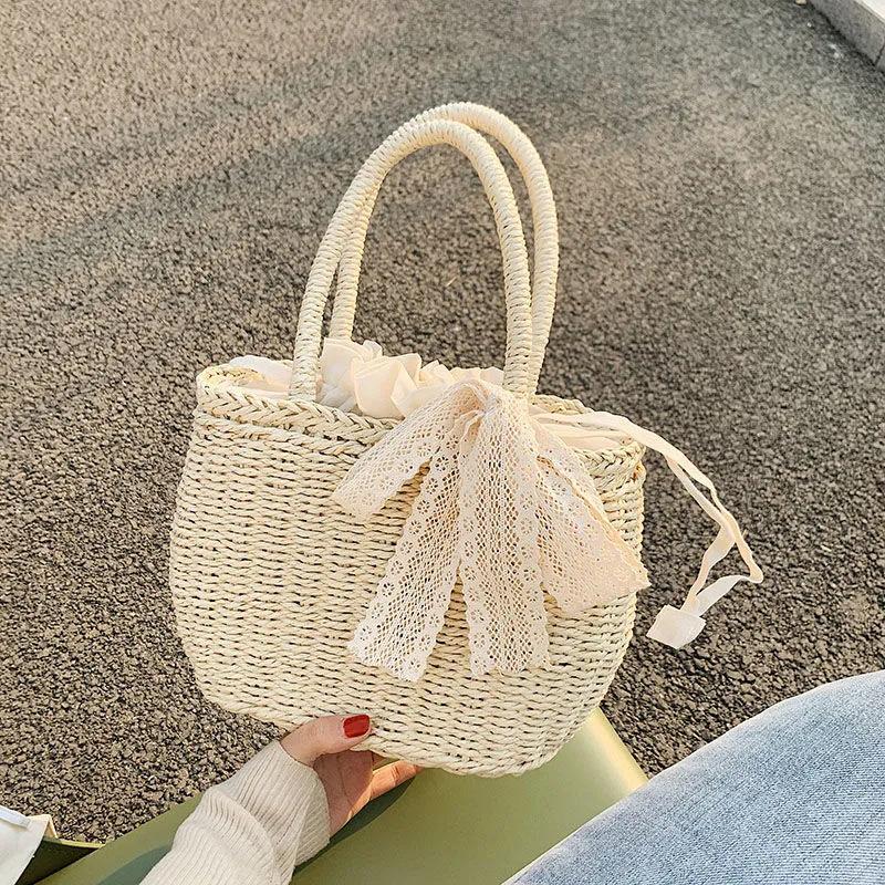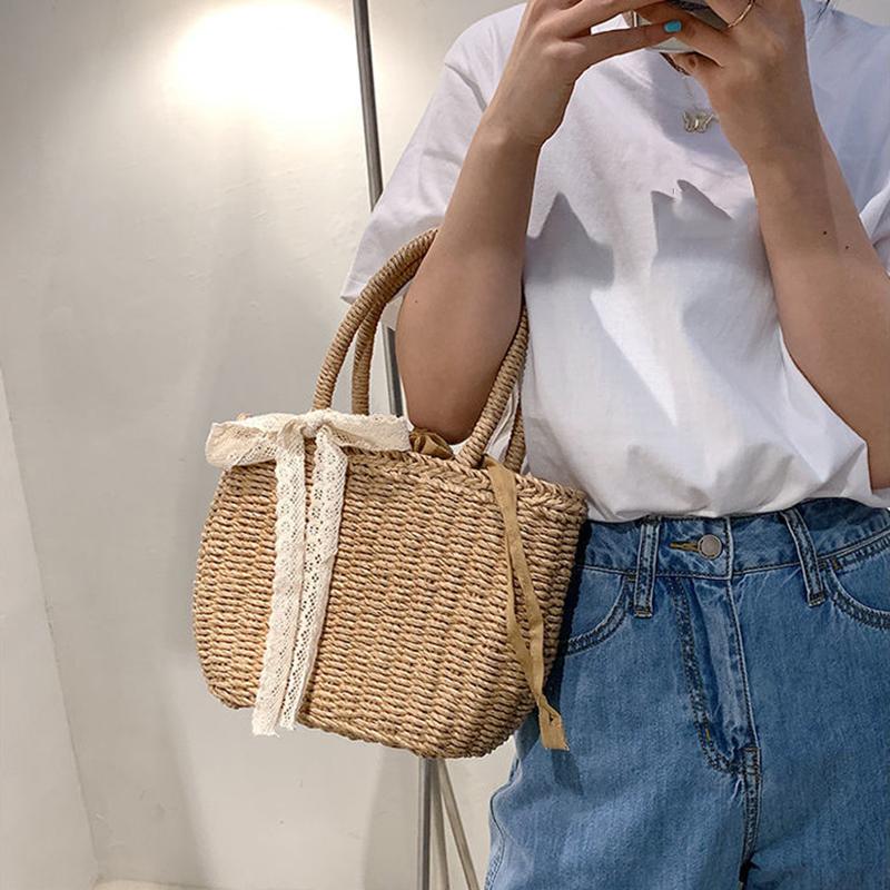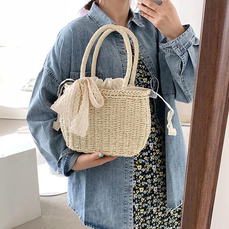 Новая летняя кружевная соломенная сумка, женская большая вместительная пляжная сумка из ротанга, дорожная сумка для отдыха, сумка-ведро ручной работы, сумка-тоут