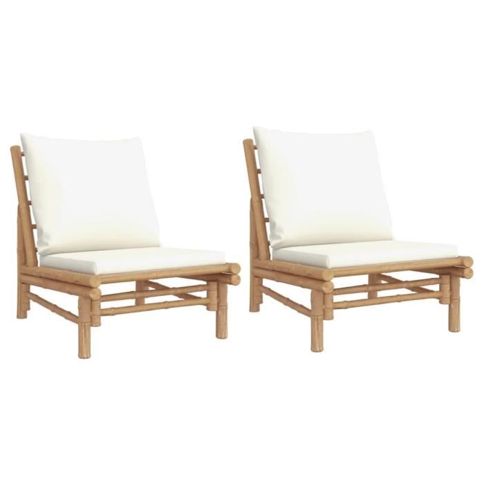VidaXL Chaises de jardin 2 pcs avec coussins blanc crème bambou 363455