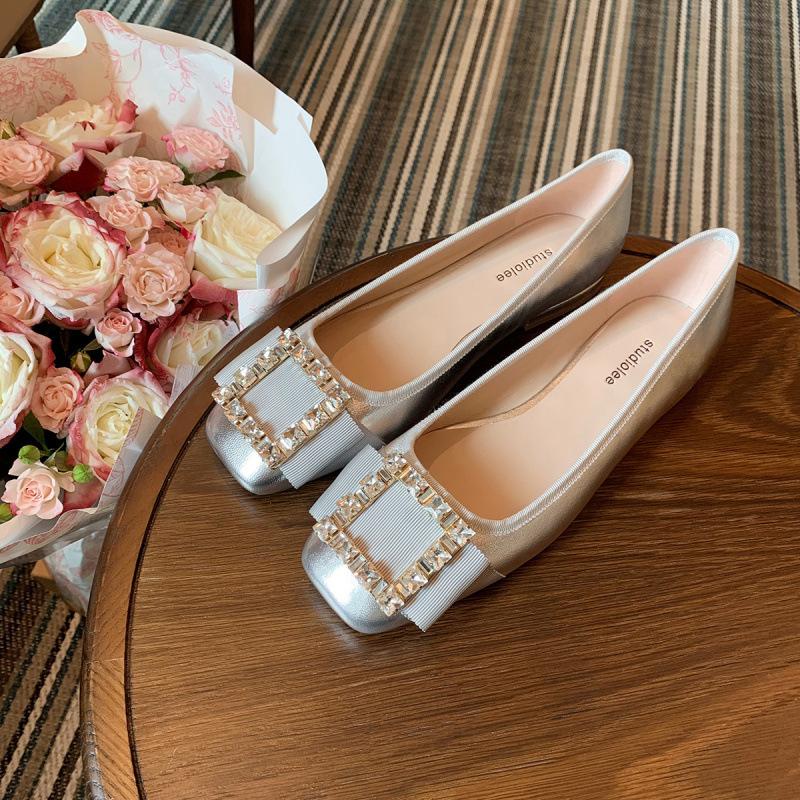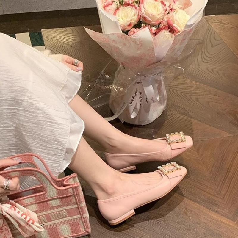 Туфли классические rv темперамент квадратная пряжка стразы для работы низкий каблук универсальные одинарные туфли женские осенние