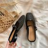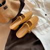 Баотоу тапочки женские ретро плетеные полые квадратный носок толстый каблук полушлепки пустые тапочки