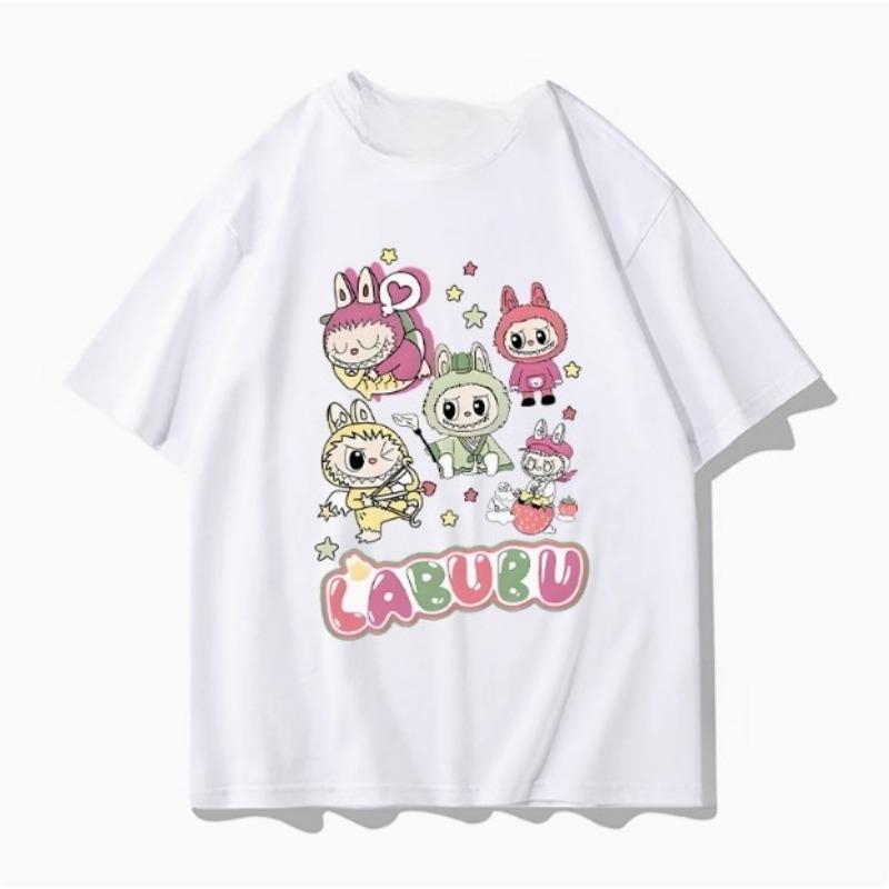 Мужская футболка с коротким рукавом для лета, коллаборация LABUBU, аксессуары для куклы Лабубу, свободная и универсальная одежда, с рукавом до локтя