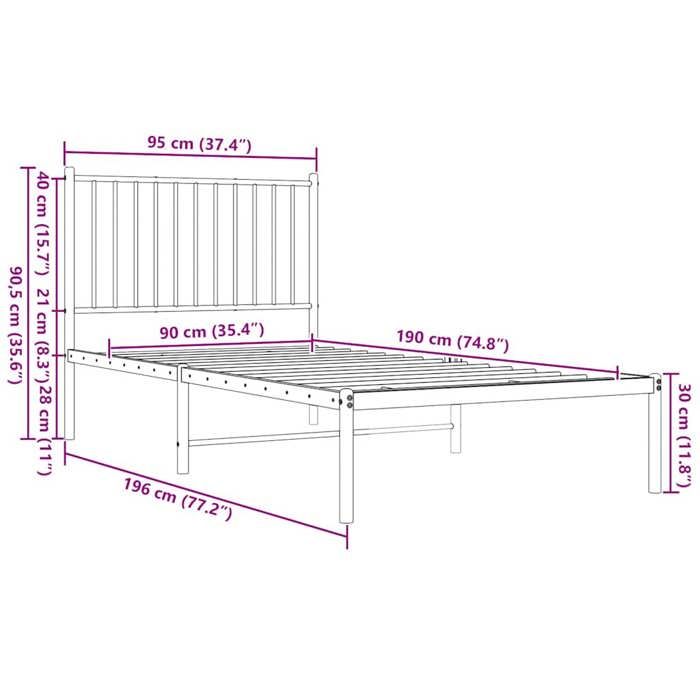 VidaXL Cadre de lit métal avec tête de lit blanc 90x190 cm 350923