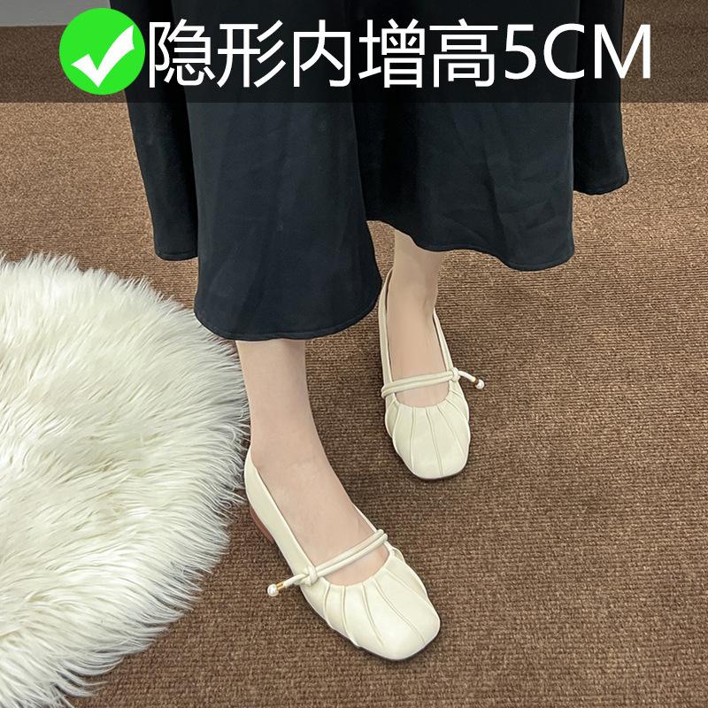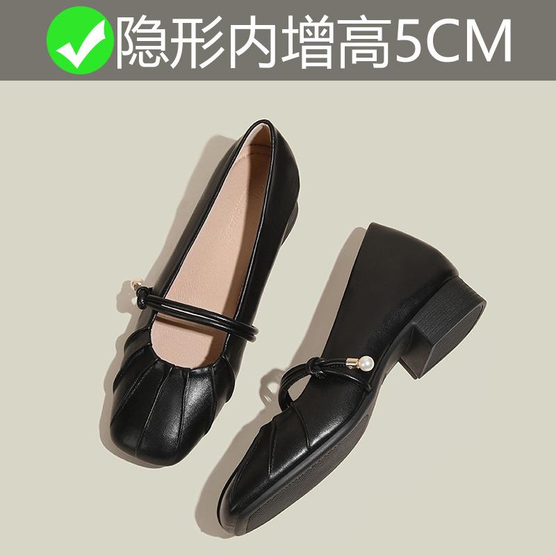 Туфли Мэри Джейн квадратный носок новый толстый каблук одинарные туфли женские небольшая внутренняя высота увеличение с юбкой сказочные туфли