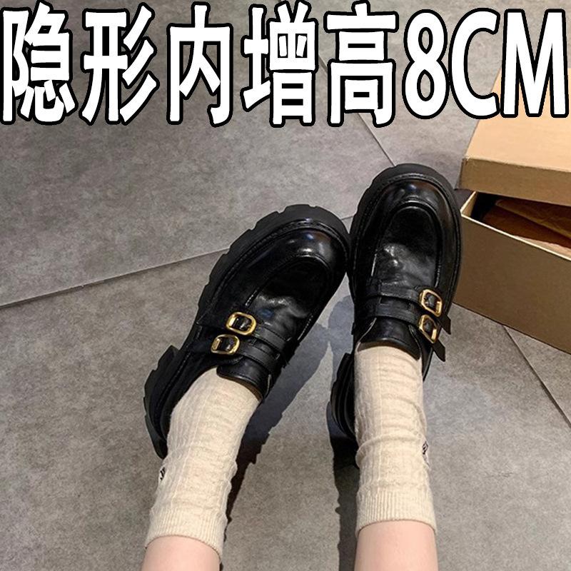 Внутреннее увеличение высоты на 6 см вымытая лошадиная кожа маленькая золотая пряжка толстый каблук толстая подошва лоферы одинарная обувь коричневые маленькие кожаные туфли женские