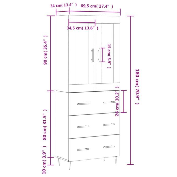 VidaXL Buffet haut Gris béton 69,5x34x180 cm Bois d'ingénierie 3198397