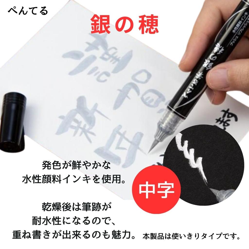 Pentel Color Brush Pen Set of 9 Brush 6 Colors Gold and Silver Water Vistage Gift Flow Sample Card (Art + Brushes) -