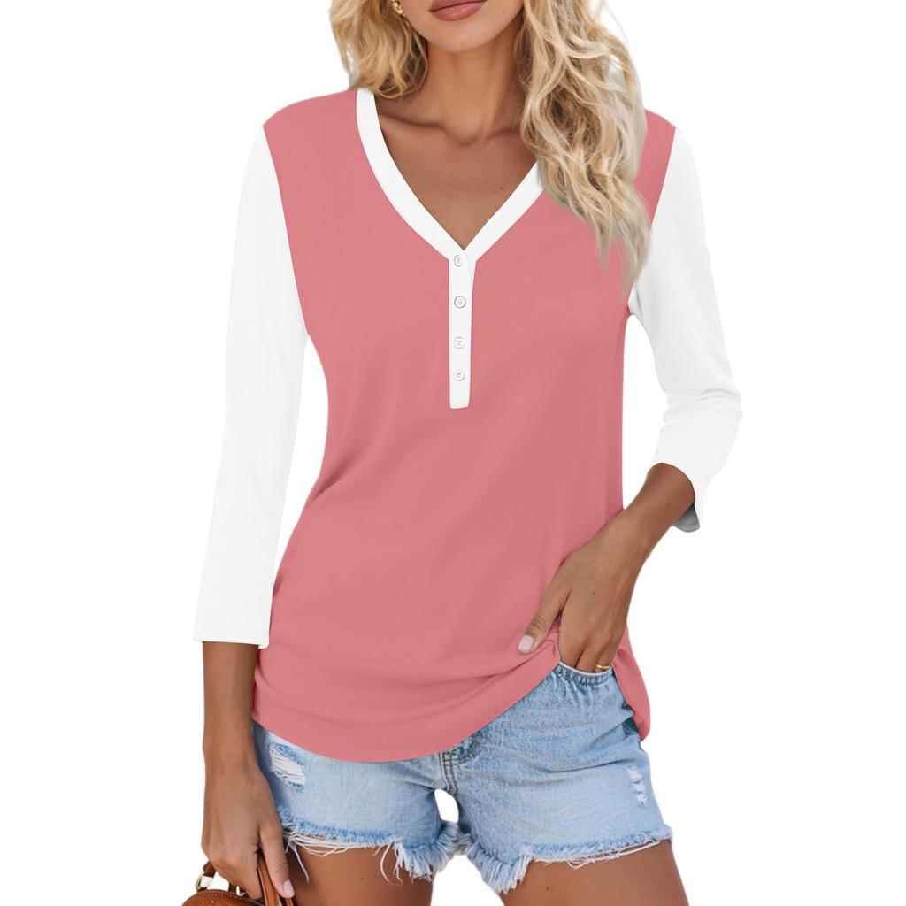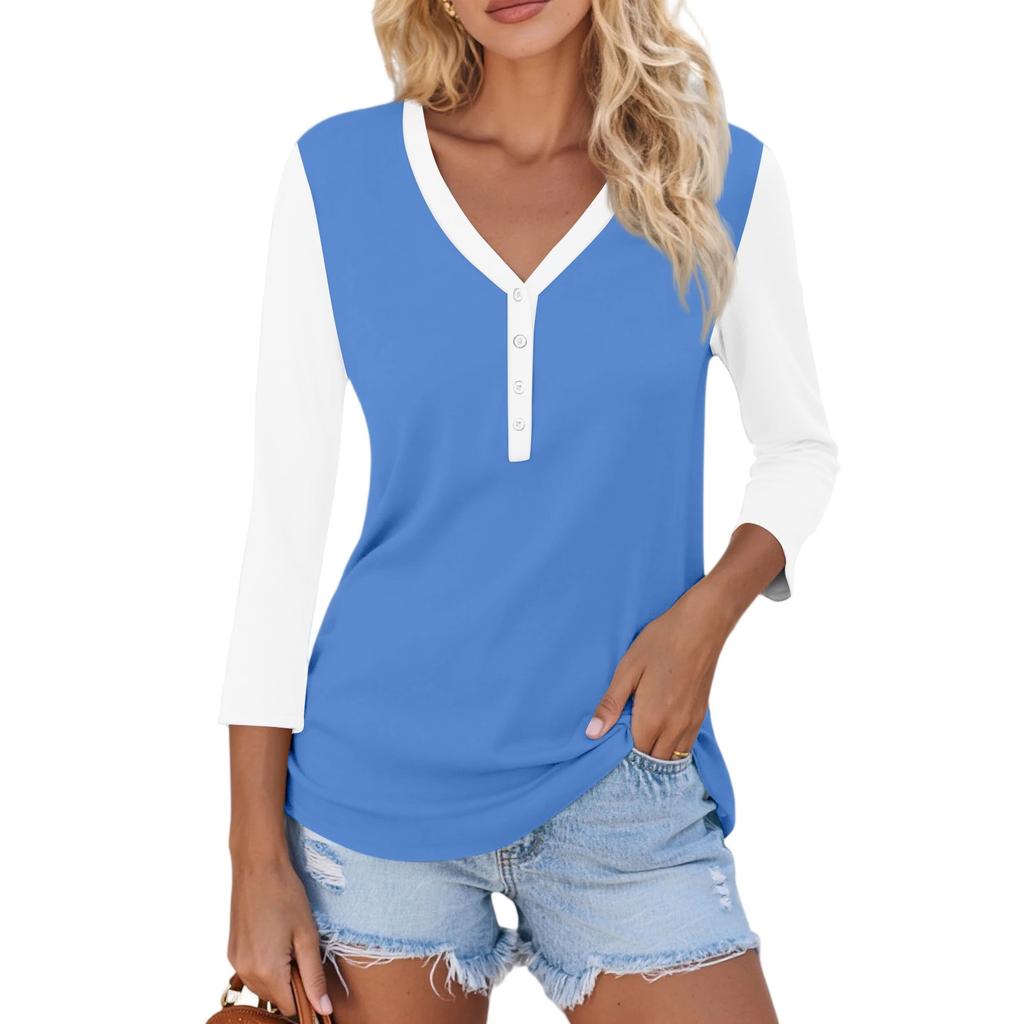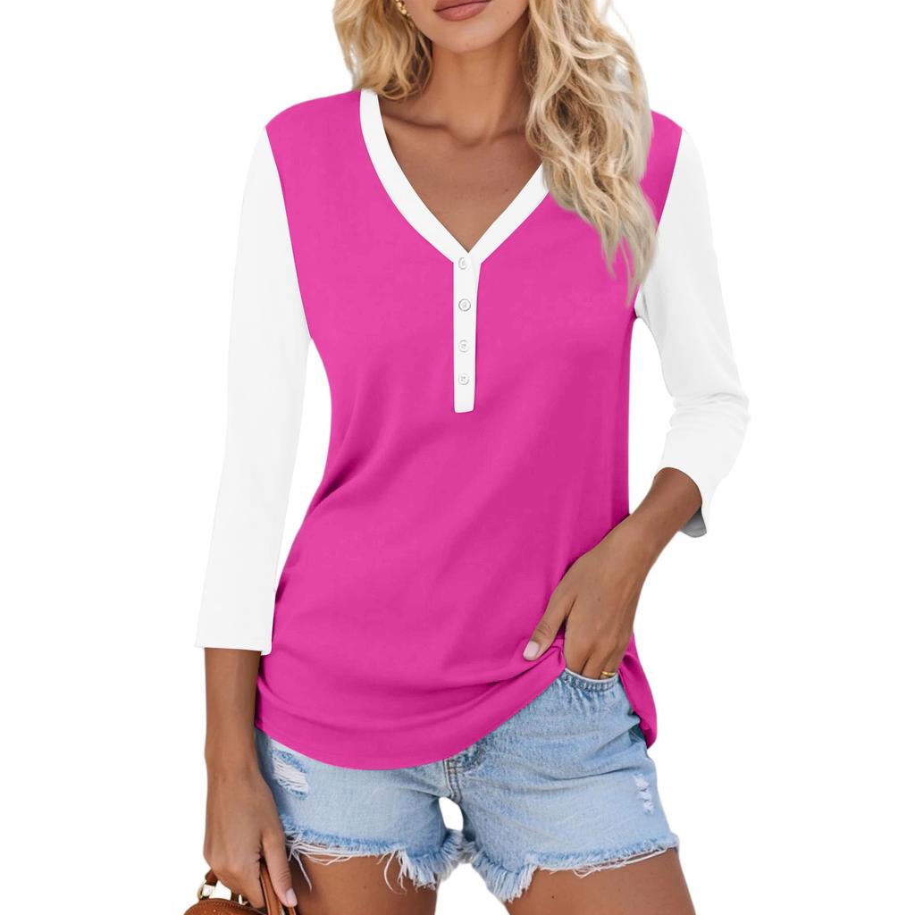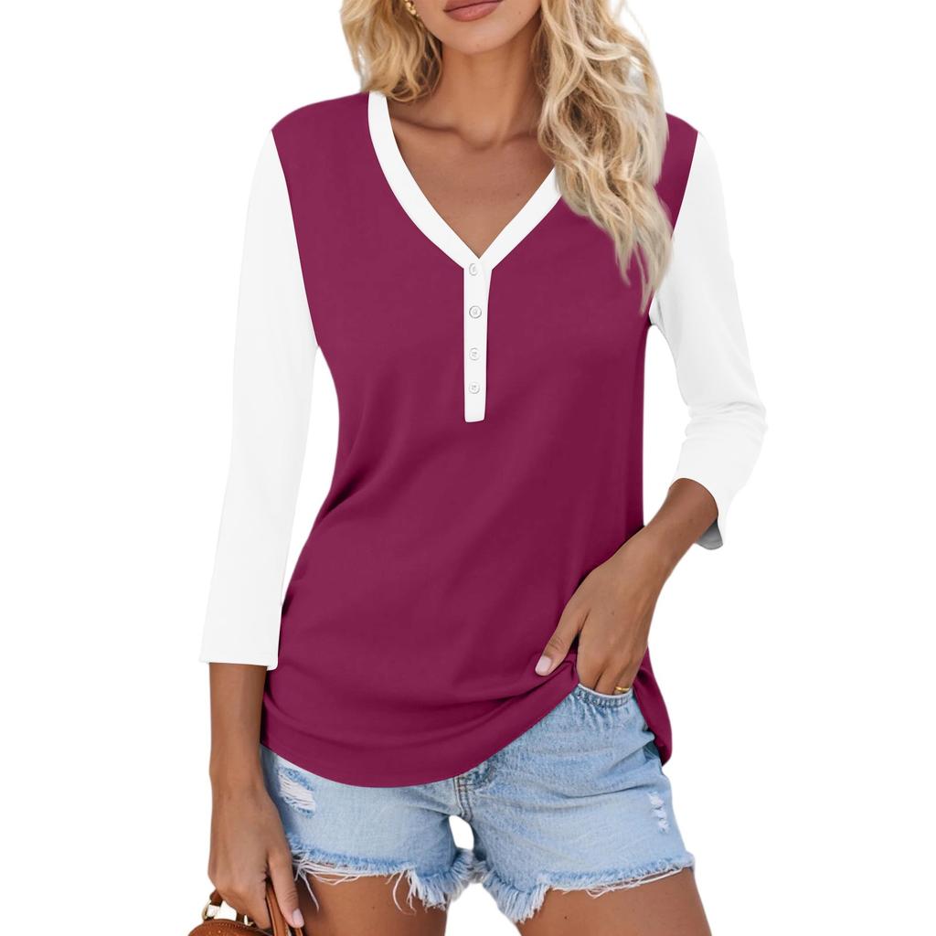Женский повседневный модный сексуальный удобный топ с V-образным вырезом, пуговицами, цветной строчкой и рукавом три четверти