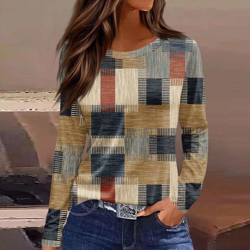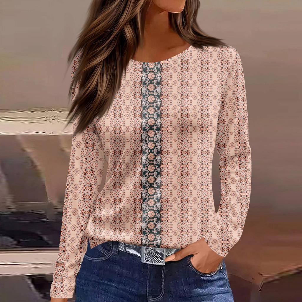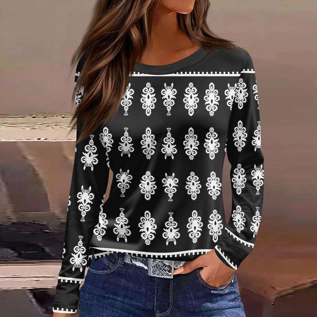 Женский повседневный топ с длинным рукавом и принтом, с круглым вырезом
