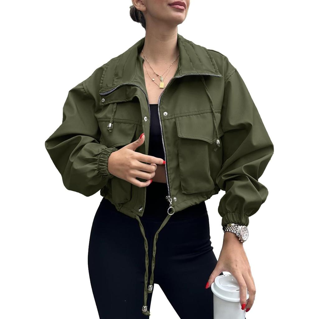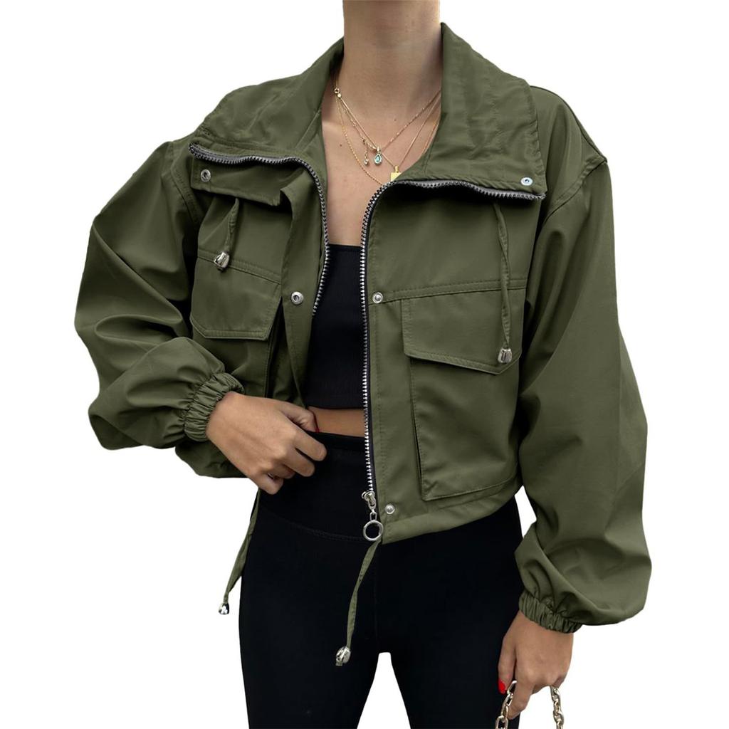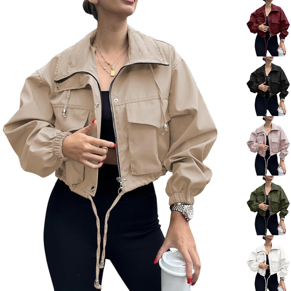 Женская модная однотонная куртка с длинным рукавом, карманом и короткой молнией, куртка-ветровка