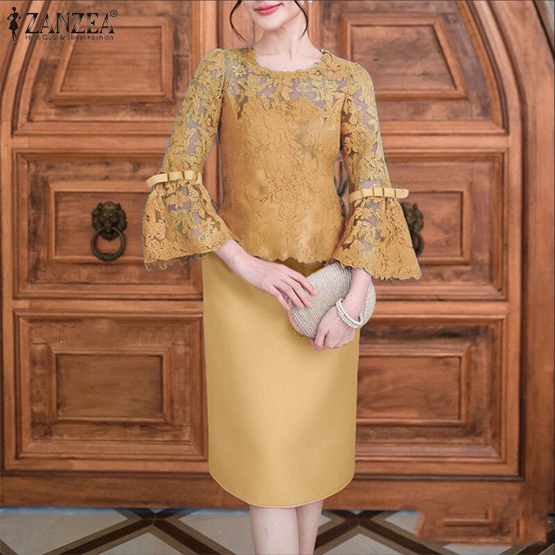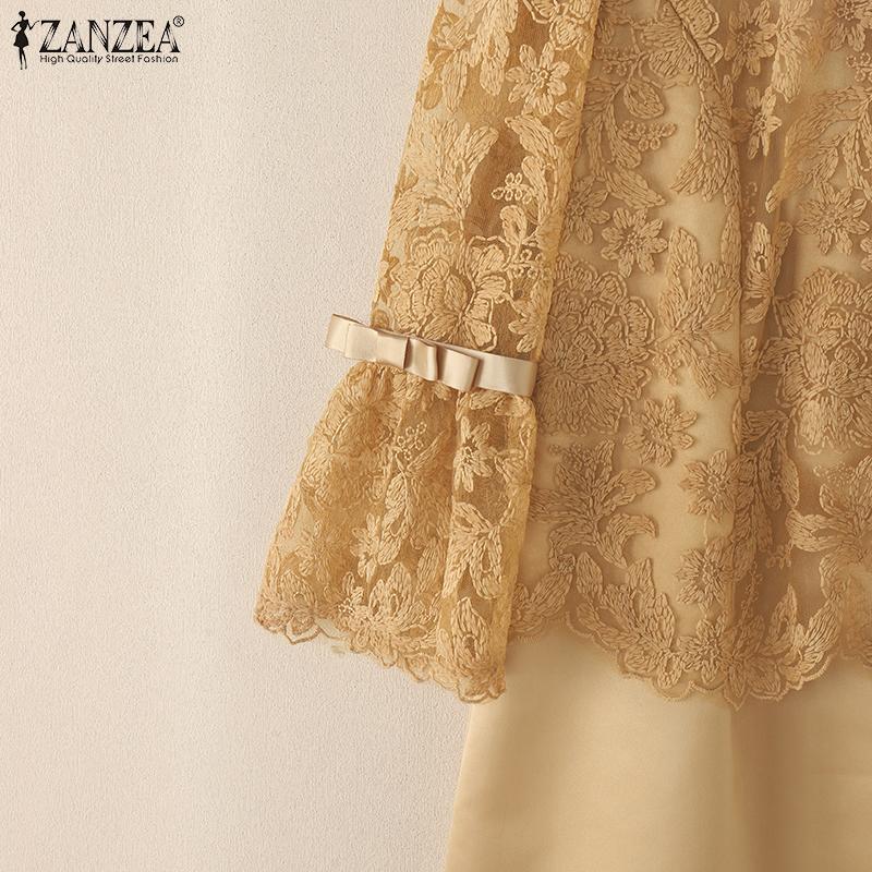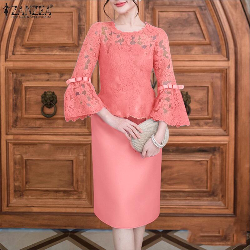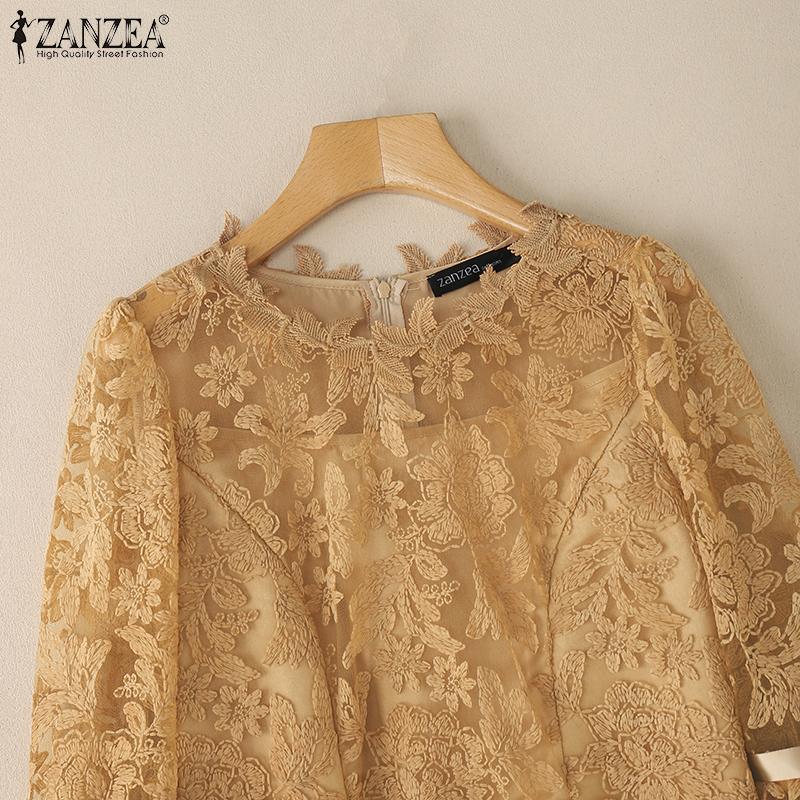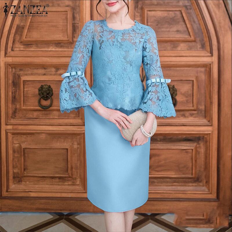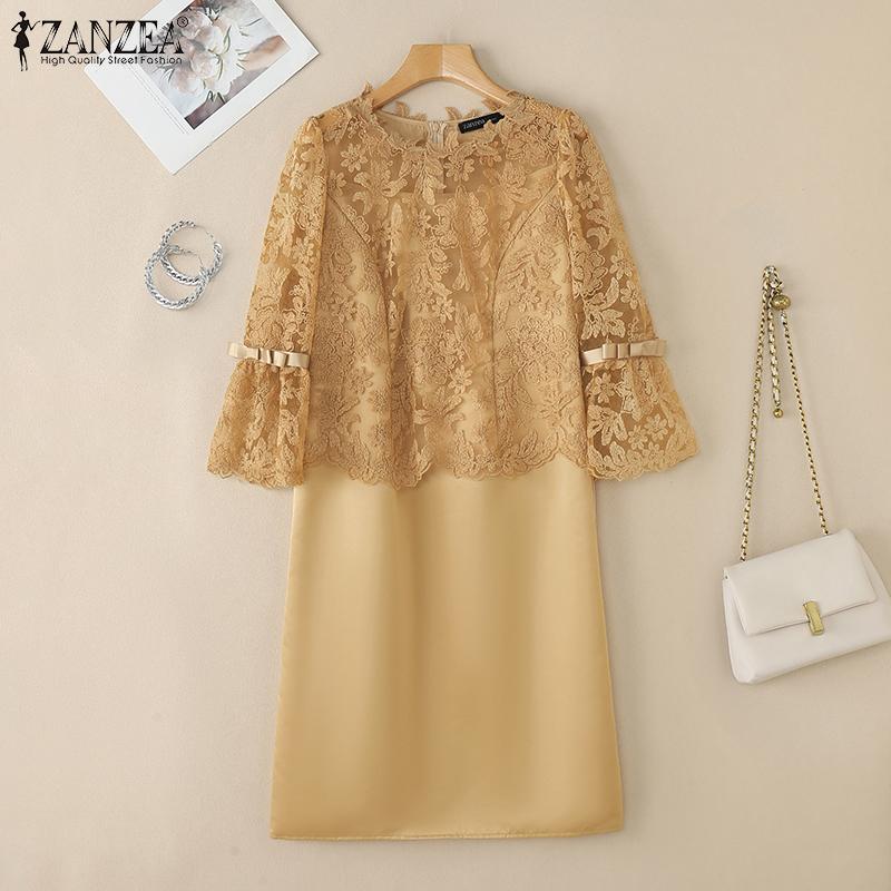 ZANZEA Женское повседневное элегантное платье-футляр с кружевной отделкой и рукавом 3/4