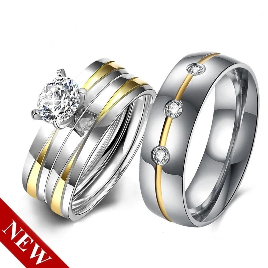 Модные парные кольца из нержавеющей стали для мужчин и женщин, инкрустированные белыми стразами и кубическим цирконием, кольца обещания, свадебные украшения, подарок на День святого Валентина