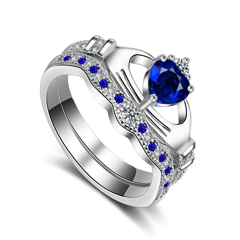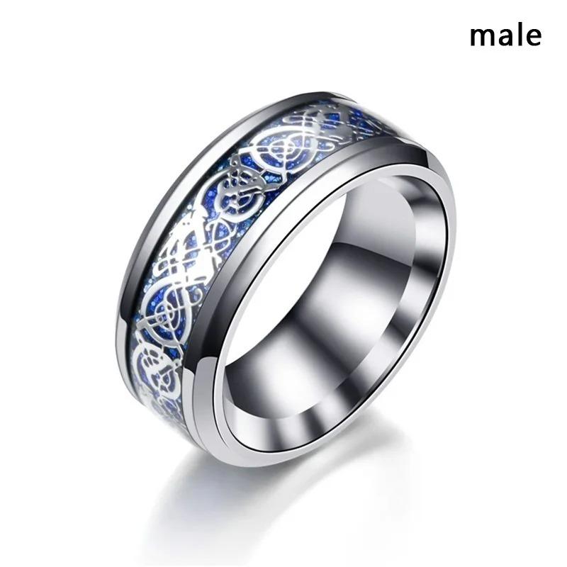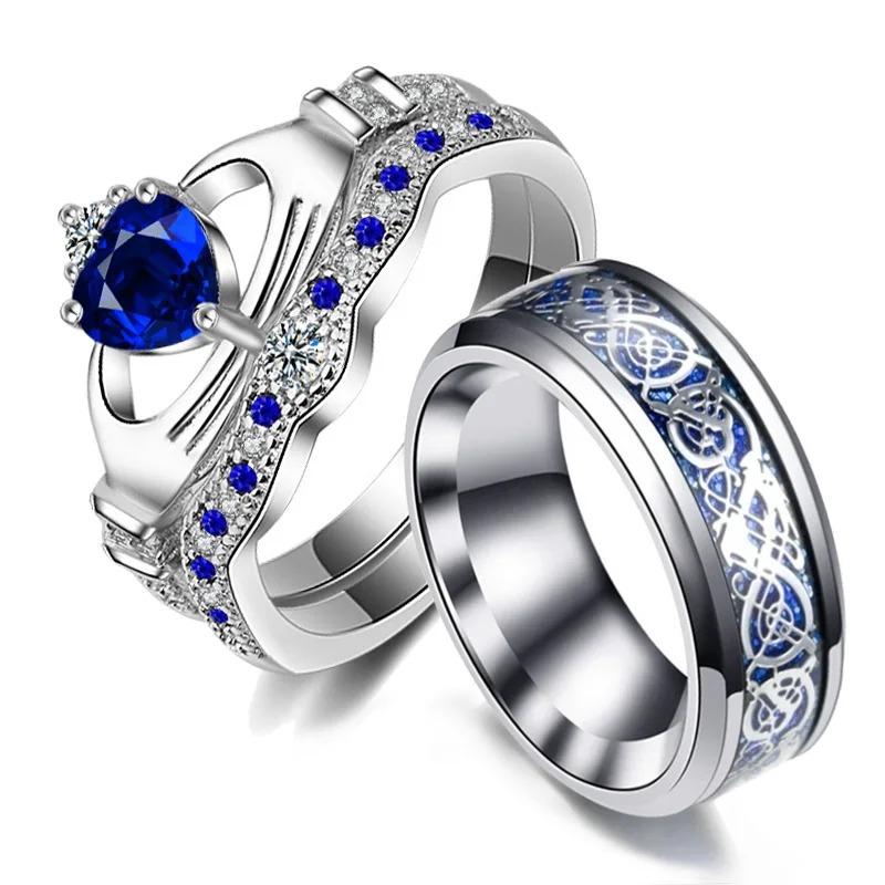 Модные парные кольца Трендовое мужское кольцо из нержавеющей стали с кельтским драконом Элегантный женский набор колец с синим цирконом и короной Свадебные украшения
