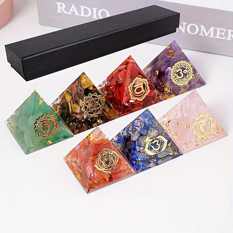Набор из 7 пирамид с подарочной коробкой 3 см Пирамида из натурального камня Энергетическая башня Домашнее декоративное украшение Домашний декор