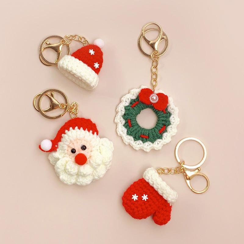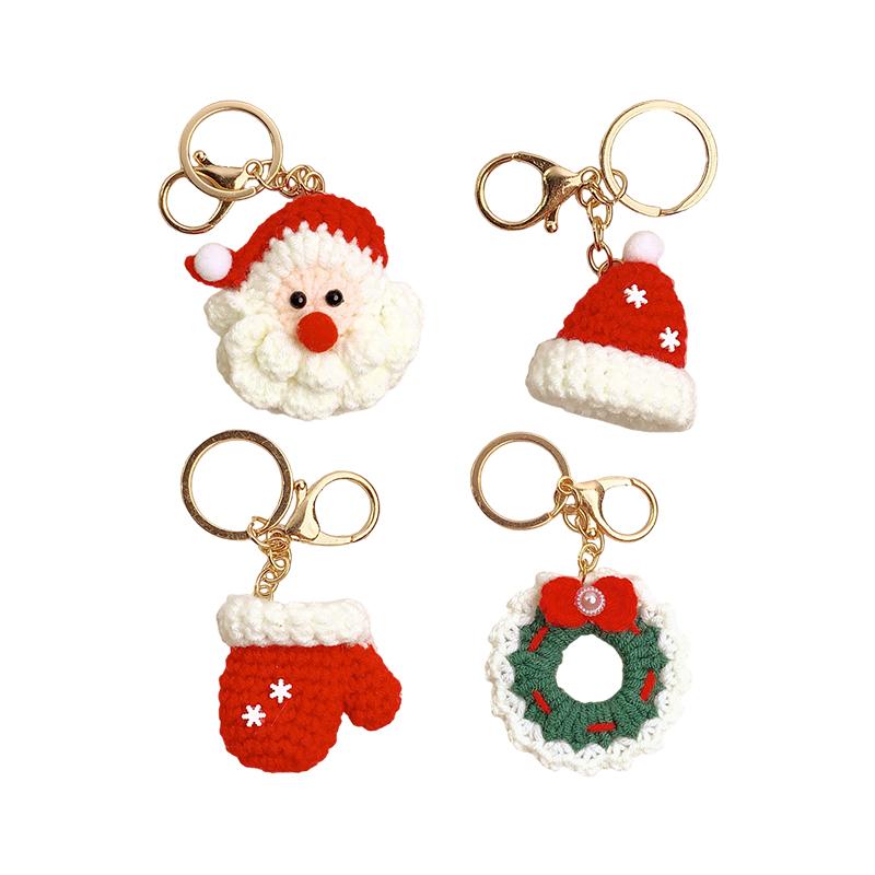 Рождественский Санта Клаус Брелоки Кольца Держатели Шляпа Перчатки Сделай сам Подвески для Сумок Декоративные Искусственные Вязаные Крючком Подарочные Аксессуары