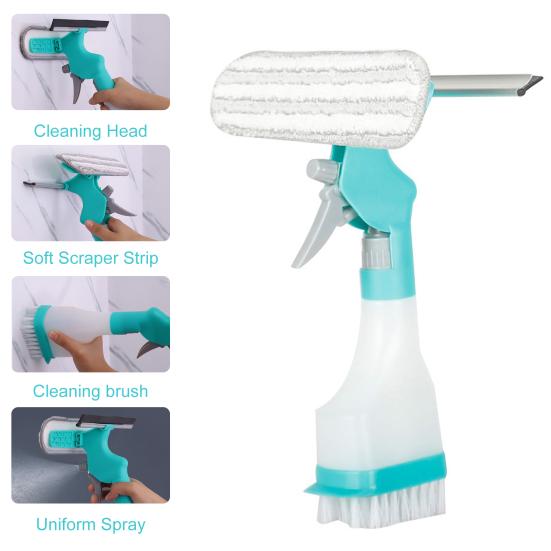Универсальное чистящее решение: Оцените безупречную чистоту с этим средством для мытья окон 4-в-1, которое объединяет распылитель, губку, скребок и стяжку в одном компактном инструменте.. От окон до зеркал, от лобовых стекол автомобилей до душевых дверей, достигайте сверкающих результатов с легкостью.