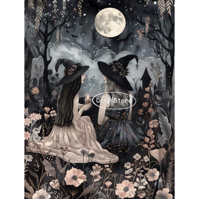 Винтажная Ведьма Черный Кот Темная Академия Постер Принт Холст Картина Хэллоуин Ведьминское Настенное Искусство Картинка Готическая Комната Домашний Декор