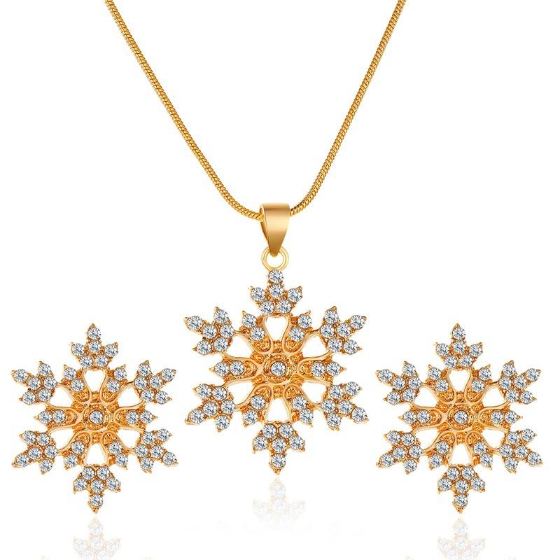 Модный комплект из 2 предметов Элегантные женские серьги-снежинки с кристаллами Ожерелье Темпераментные украшения-снежинки с цирконием Аксессуары Подарки