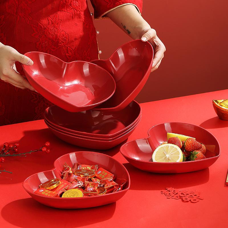 Красная Праздничная Свадебная Тарелка для Фруктов в Форме Сердца Любовь Торт Десертная Тарелка Гостиная Свадебные Конфеты Тарелка для Сухофруктов Маленькая Тарелка