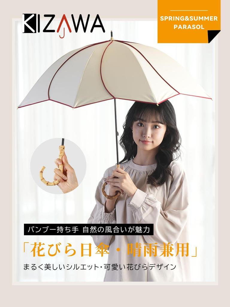 [Дизайн лепестков и красивый силуэт купола] Дизайн лепестков и спокойные, классические цвета создают зрелый и милый образ. Милый, округлый силуэт привлекателен и создает женственную и элегантную атмосферу.. Округлая куполообразная форма с глубокими ребрами обволакивает вас, защищая как от солнца, так и от дождя.. Общая длина составляет примерно 67 см, длина ребер - 50 см, а диаметр - примерно 80 см. Это элегантный и роскошный зонт от солнца, который можно использовать как в солнечную, так и в дождливую погоду.