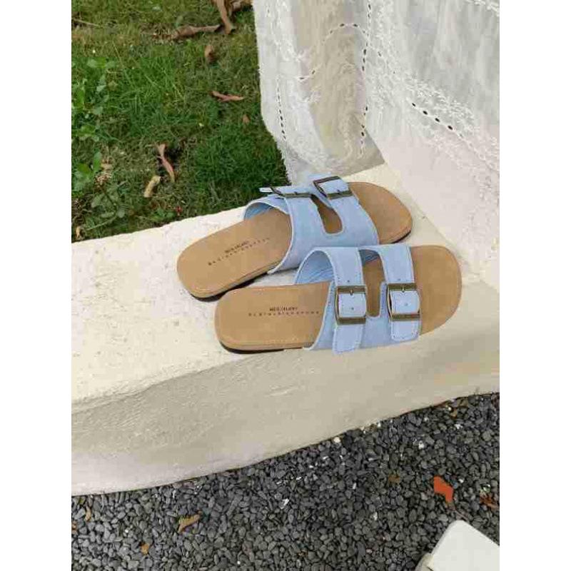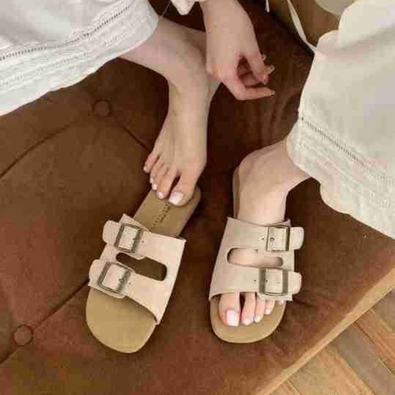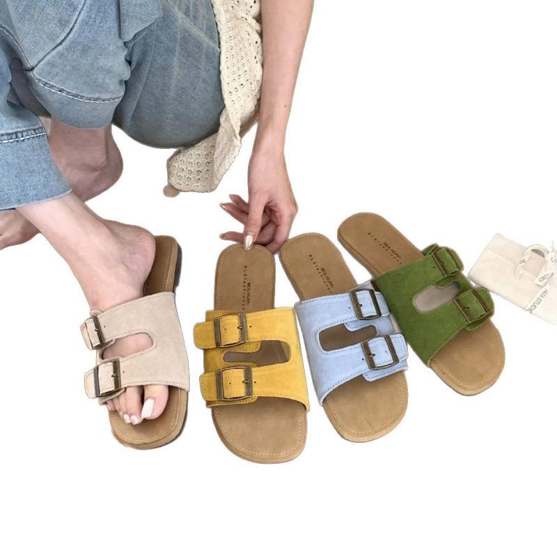 Летние универсальные шлепанцы на плоской подошве с пряжкой-ремнем в виде одной буквы для женщин, для повседневной носки, пляжные, крутые шлепанцы