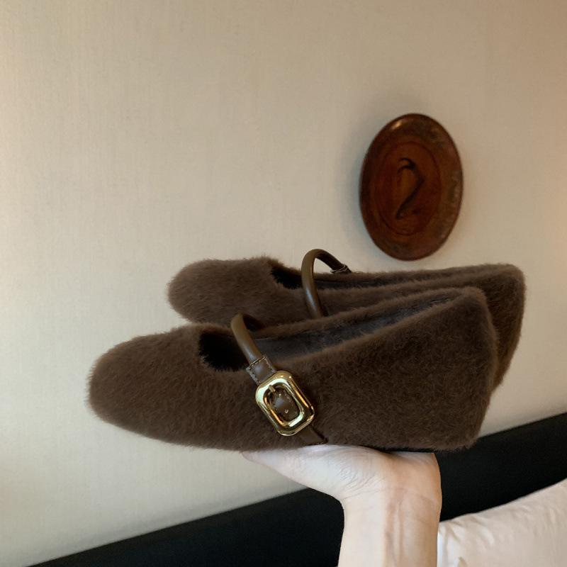 ! Туфли балетного стиля ремешок из одного слова внутренняя высота увеличение пушистая плоская подошва Мэри Джейн одинарные туфли женские