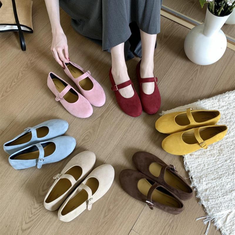 Круглые туфли с легким ободком, замшевые балетки, балетки, ранневесенний пояс с пряжкой, туфли Мэри Джейн, женские туфли.