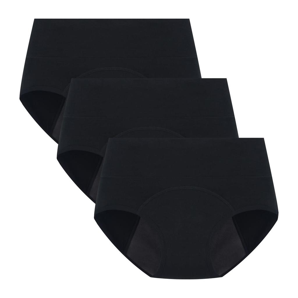 Гигиенические шорты для менструального белья высокие внутренние набор из 3 [POPKOK] женщины, шорты, набор, хлопок, талия, непромокаемые, трусы, нижнее белье, (черный, ЛЛ)