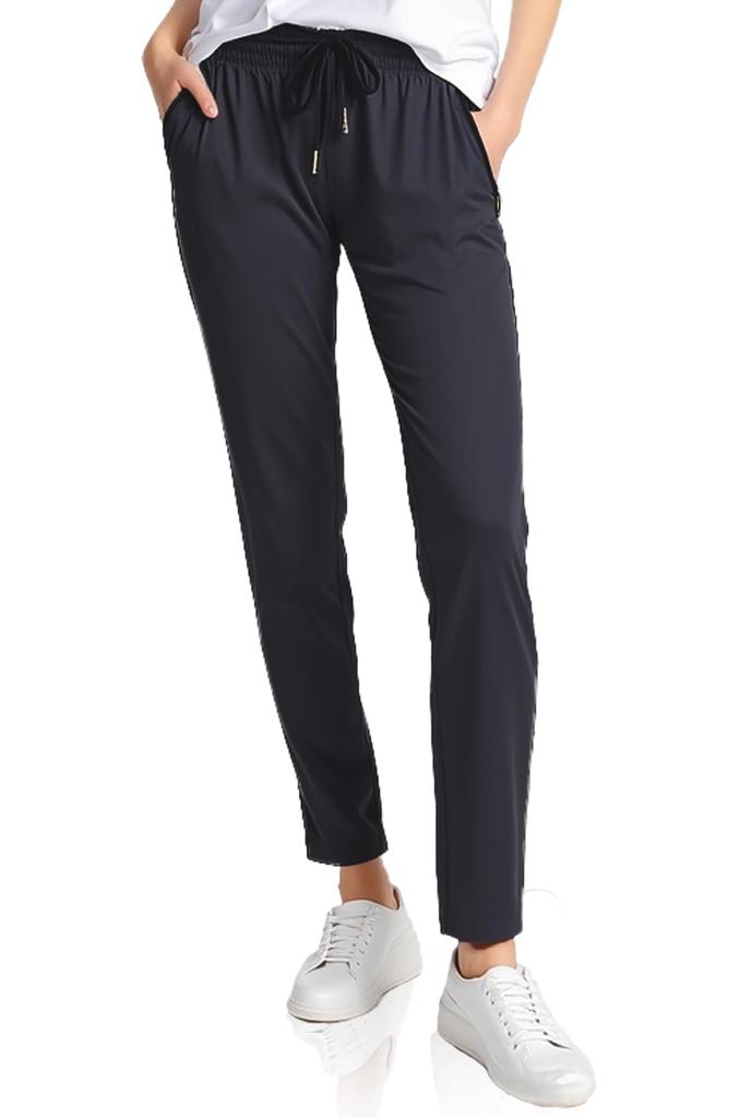 [Удобно носить] В тот момент, когда вы их наденете, вы почувствуете гладкую текстуру и прохладное, комфортное ощущение на вашей коже. Эти длинные брюки также удобны и хорошо тянутся.