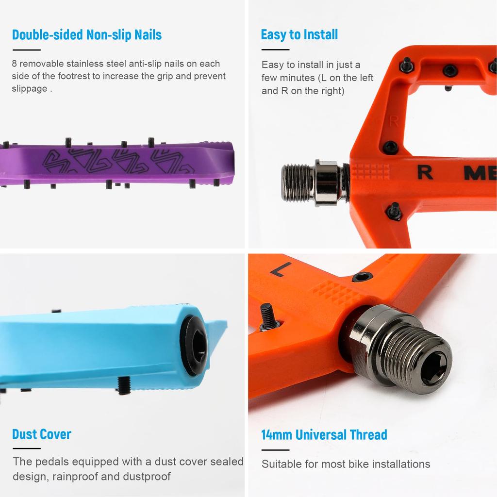 TINGSHING Педали для горного велосипеда MTB Дорожные Нейлоновое волокно Велосипедные Легкие Широкая плоская платформа Велоспорт Аксессуары MTB Двусторонние шипы Оранжевые Нескользящие