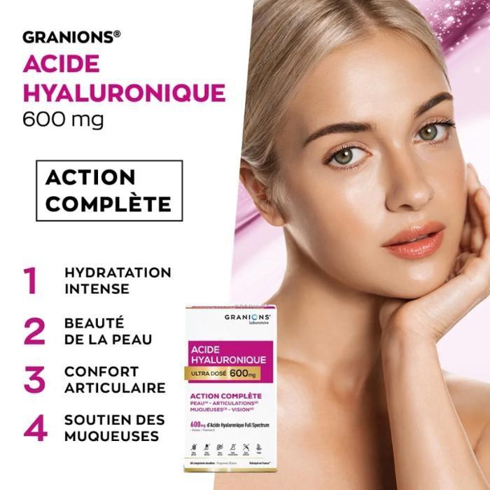 Granions - Гиалуроновая кислота Полный спектр Ультра-дозировка 600 мг - Кожа, Суставы, Слизистые оболочки & Vision - Веганский - 60 таблеток
