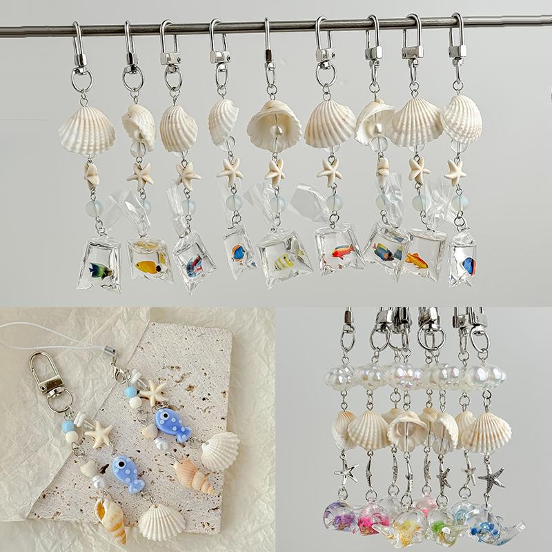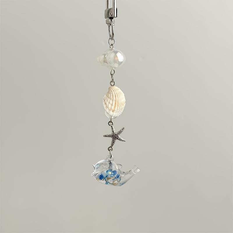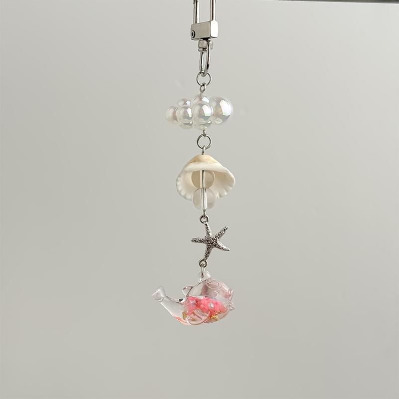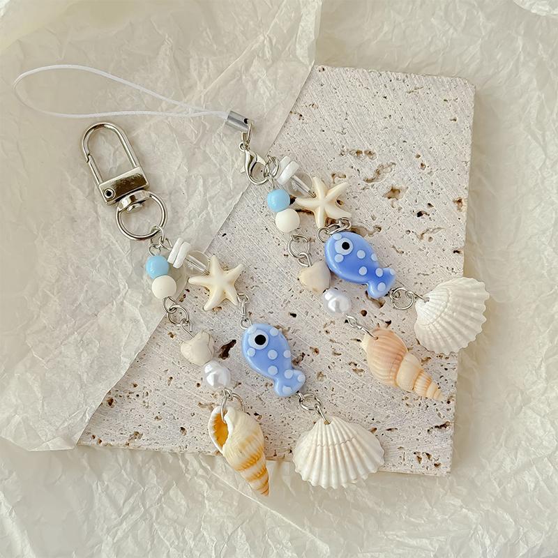 Стильный кулон-брелок с ракушками и жемчугом, Океанская пентаграмма, Шарм-подвеска для телефона, Милый бисерный ремешок для мобильного телефона, Брелок для сумки