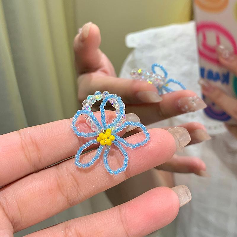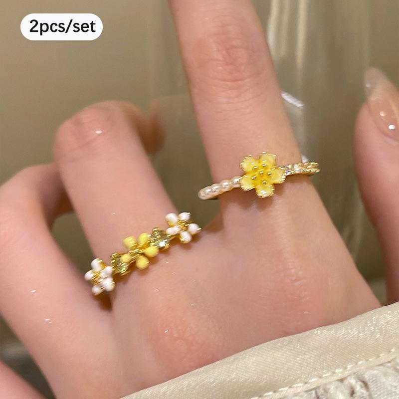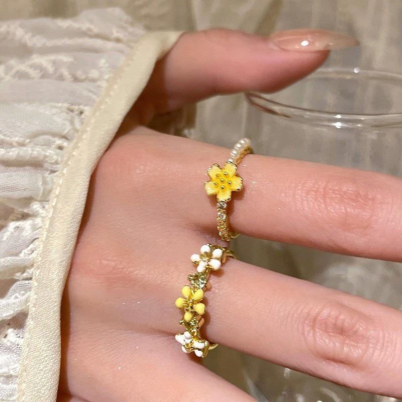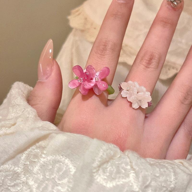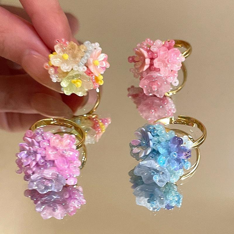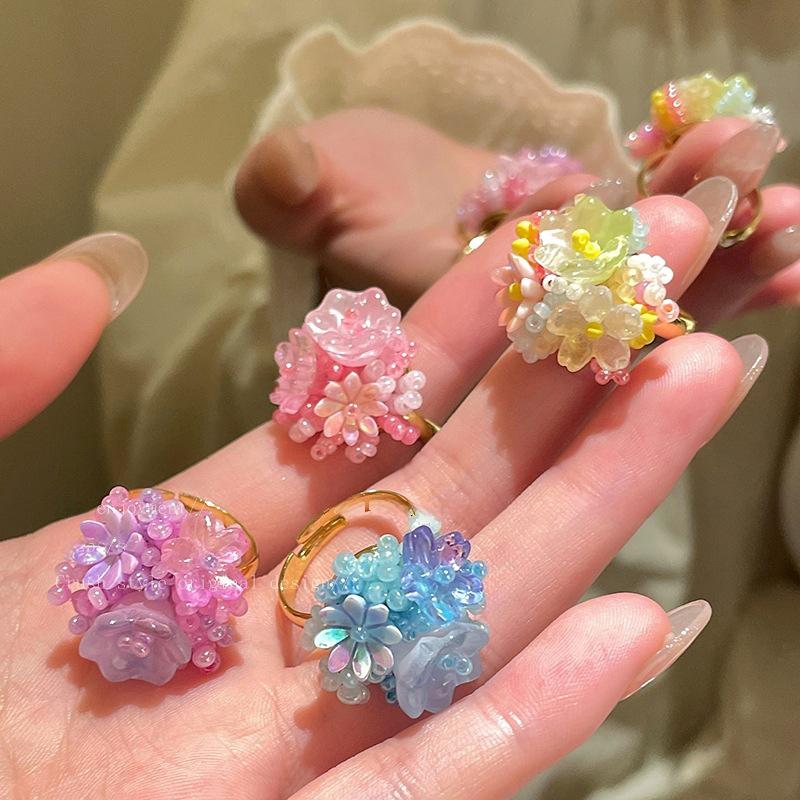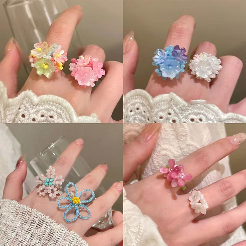 Красочные кольца с бусинами в виде цветов для женщин, девушек, корейские, милые, с крупными цветами, кольца на пальцы, ювелирные изделия, эстетические аксессуары Y2K
