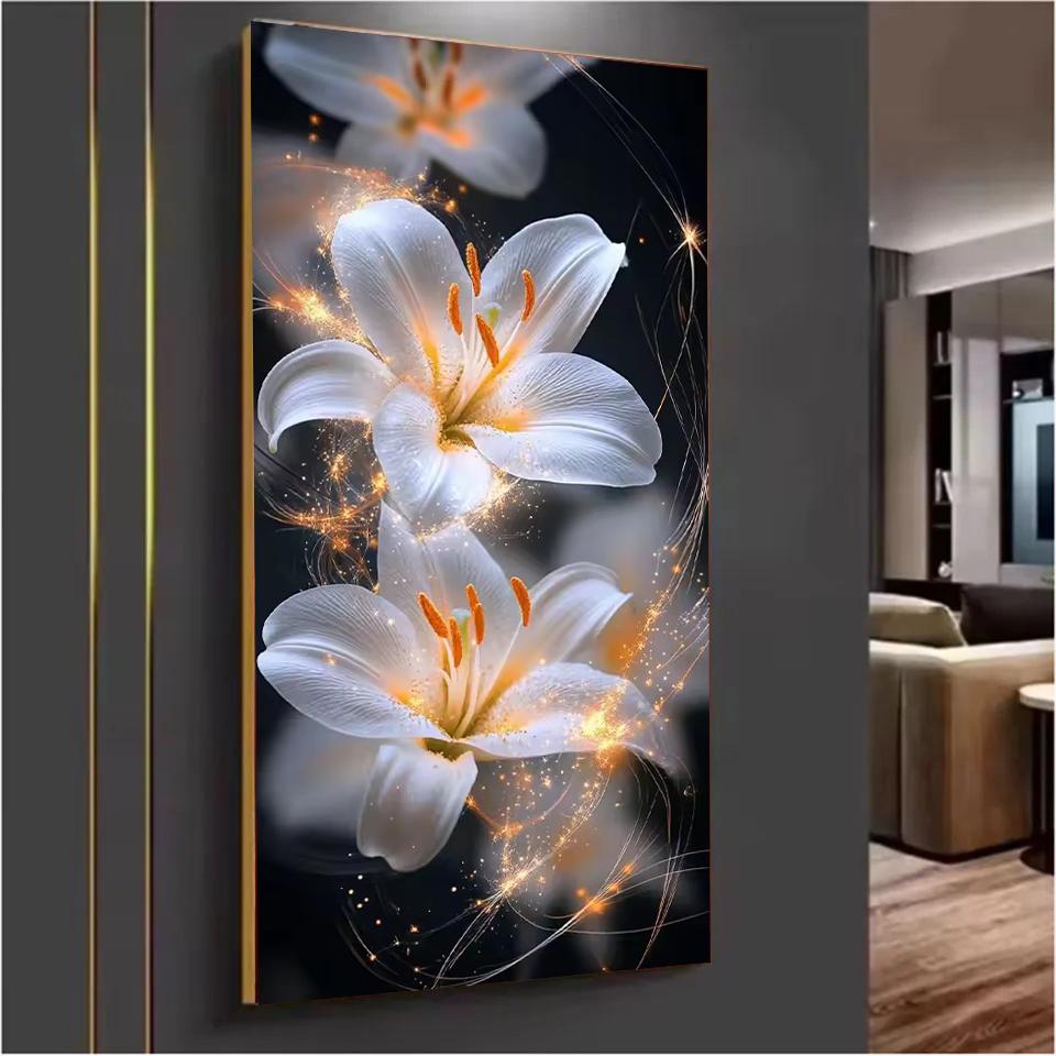 Большая 5D алмазная мозаика своими руками, цветочный пейзаж с белыми цветами и сверкающими стразами - от среднего до продвинутого уровня, вышивка мозаикой для декора дома