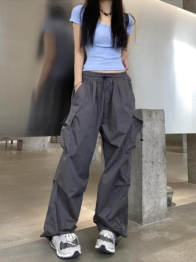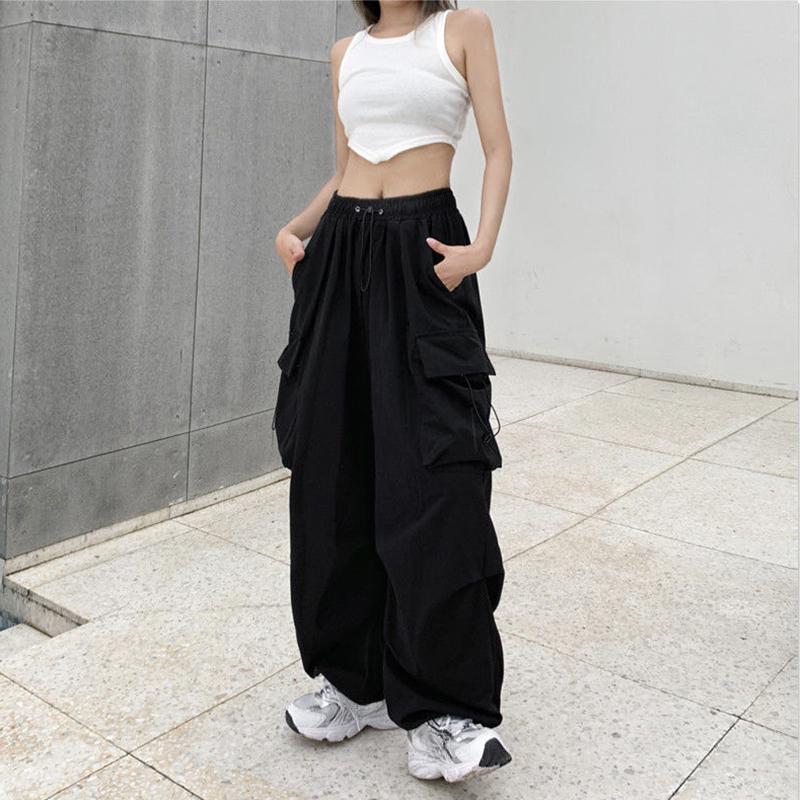 Y2K женские уличные брюки-карго Harajuku повседневные однотонные мешковатые прямые брюки модные широкие брюки с карманами для бега