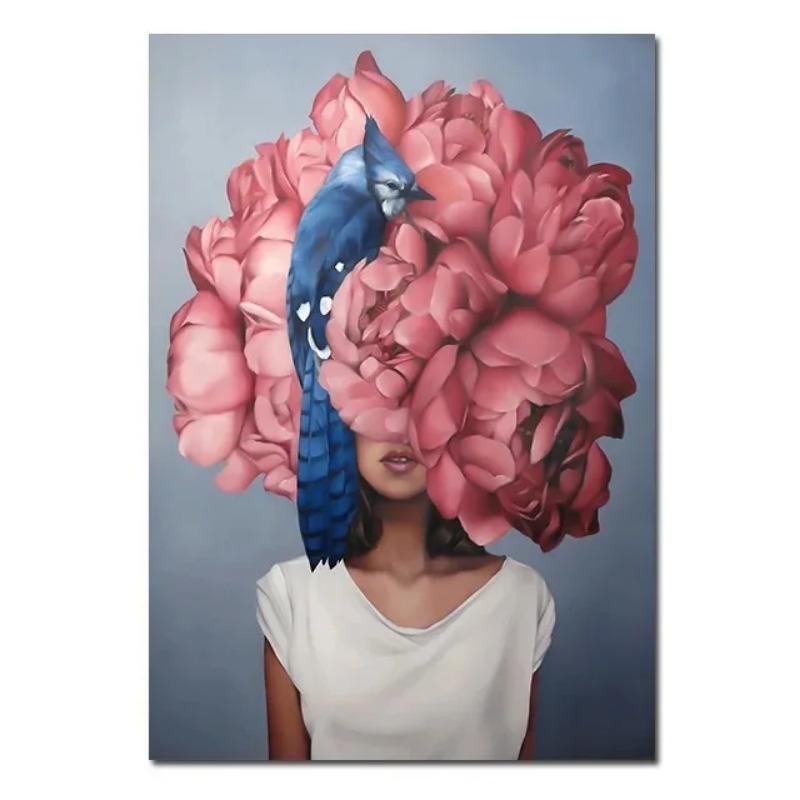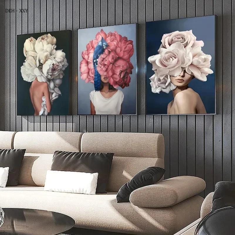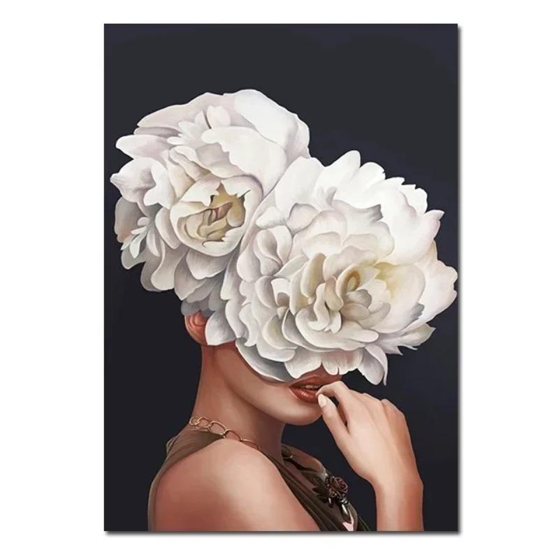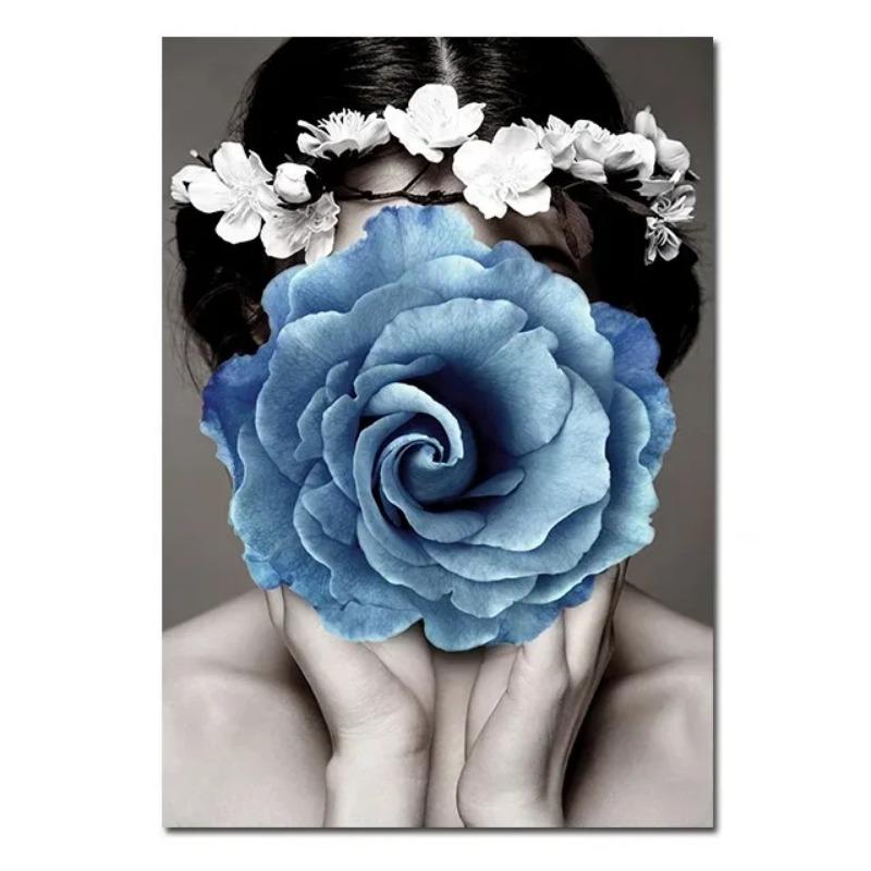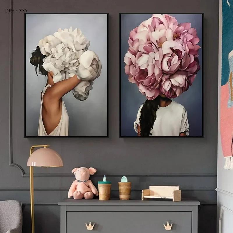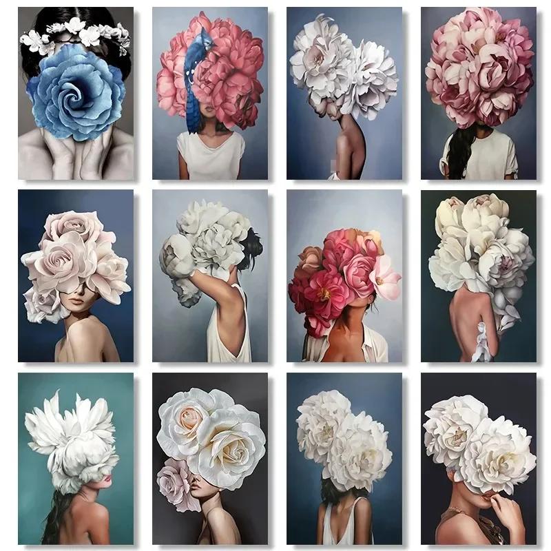 Холст Живопись Скандинавские Настенные Художественные Постеры Женская Голова с Цветами Мода Леди Портрет Картина Домашнее Украшение Спальни (Без рамки)