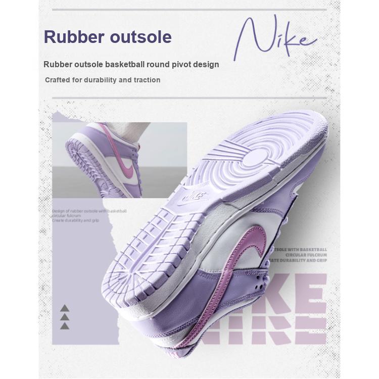 Новые детские низкие кеды Nike Dunk с противоскользящей износостойкой подошвой для скейтбординга, фиолетово-белые, унисекс HQ1185-161