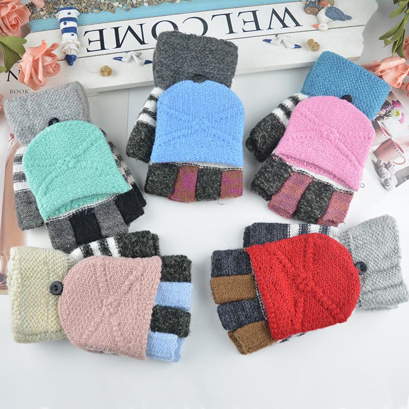 Новые женские термоперчатки-митенки с откидным верхом, зимние, для велоспорта на открытом воздухе, спортивные, вязаные, студенческие перчатки для письма, шерстяные