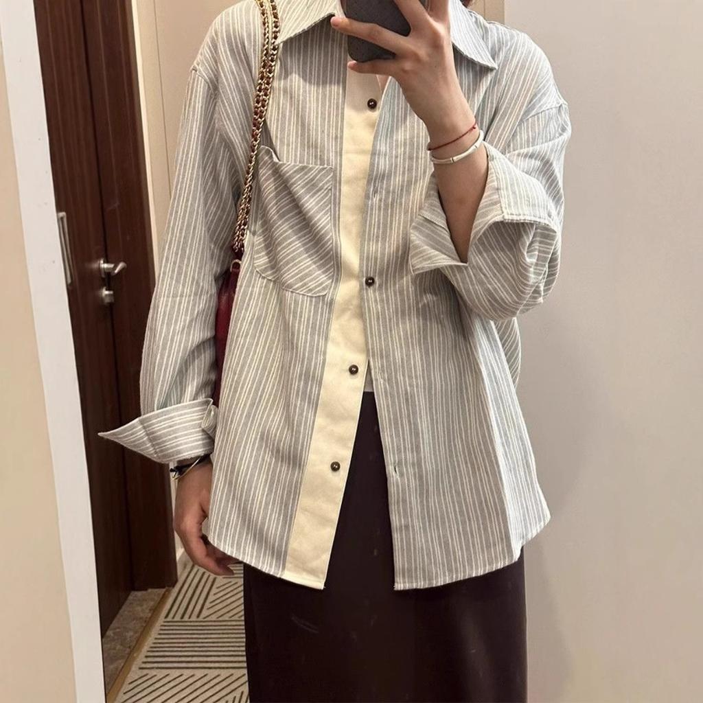 Дизайнерская чувственная свободная полосатая рубашка с длинным рукавом для женщин на весну и осень, новая повседневная рубашка для защиты от солнца
