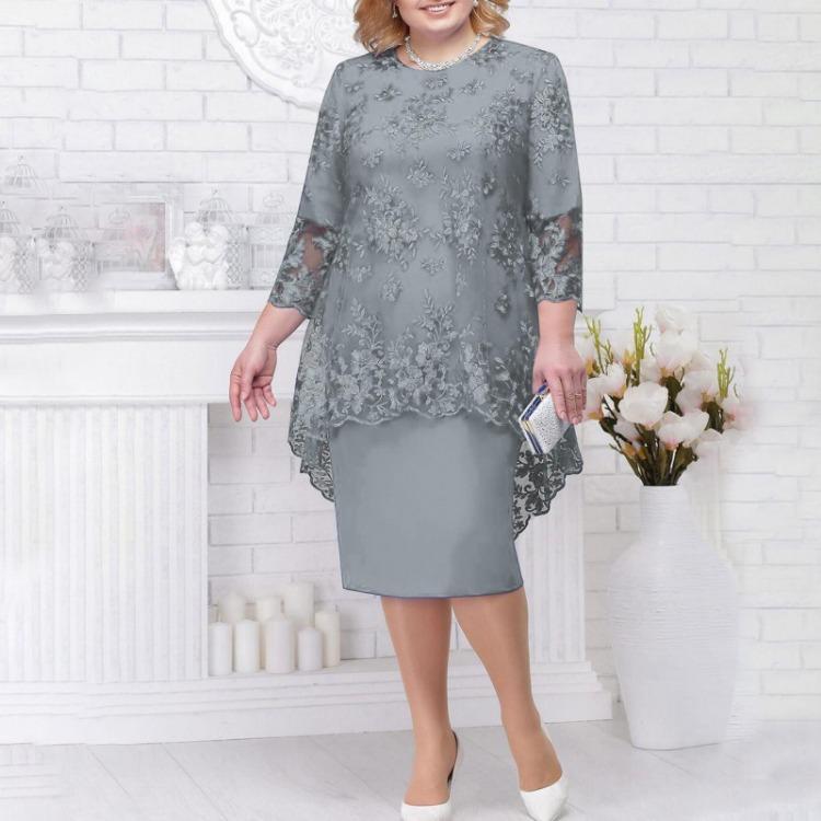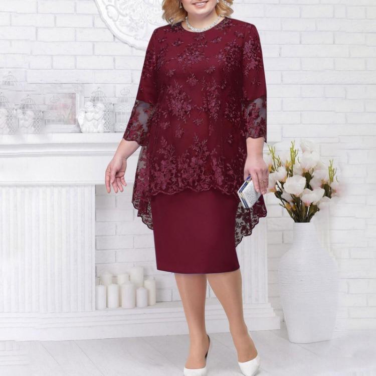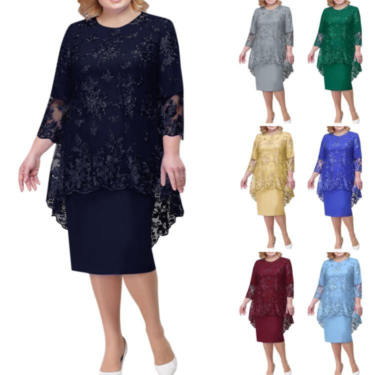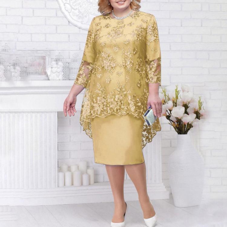 Женская повседневная мода кружева Вышивка Средняя длинная длина Две части Комплект Платье Особенности: